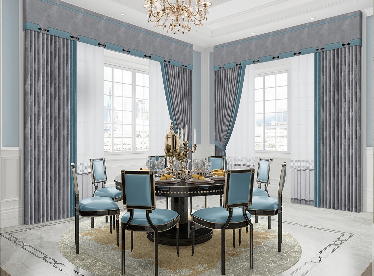 幾何圖案彰顯時尚,黃昏藍(lán)感知歲月的柔和,布藝柔軟的外表下隱藏高貴和智慧