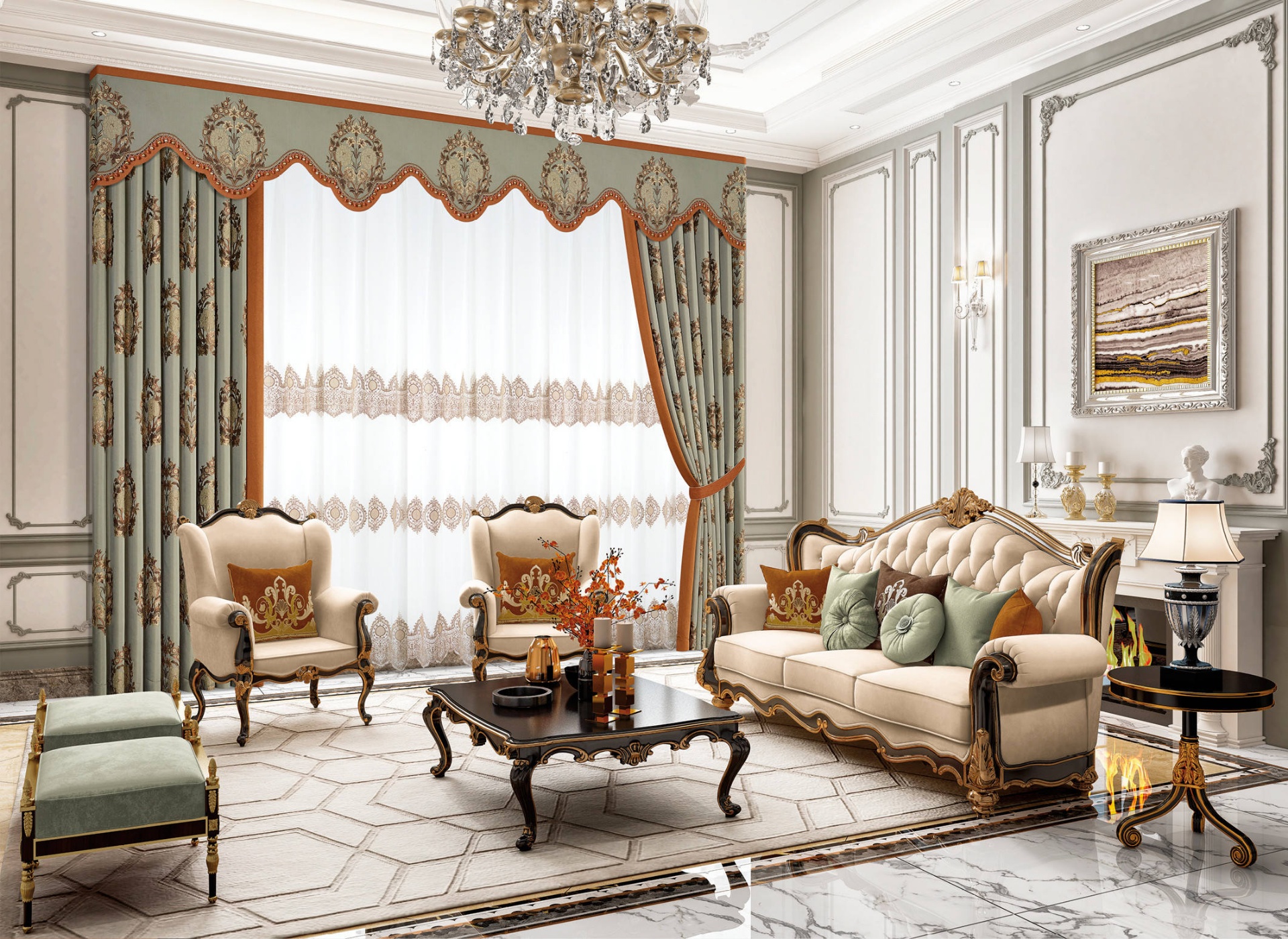 田園牧歌式的色調(diào),兼具田園的隨性與都市的精致,讓空間變得活躍。古典的水波簾造型美觀,更添幾分簡(jiǎn)約典雅氣息。